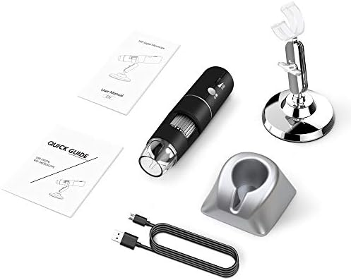 What’s in the box? Digital hand microscope, Metal stand, Plastic base, 1 meter USB line, User manual, Quick guide, Packing box.