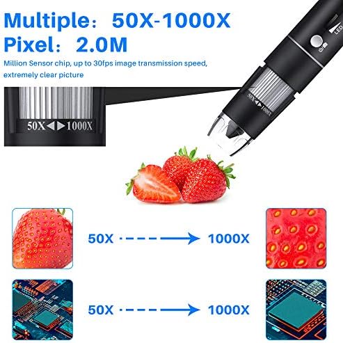 Adjustable Lights: 8 adjustable LED lights on the tip of the camera help to capture excellent detail and clear images in the dark. It can be used in the dark or in a hidden corner. This hand microscope good for numismatics and for homeschool science projects.