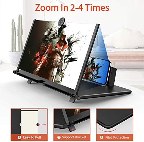 【12″Screen Magnifier Newest Version】- The Newest Version of the screen magnifier in 2021 can magnify your phone screen 3-4 times. Now, you can project your phone on this amazing screen magnifier and enjoy a video or a wonderful movie.