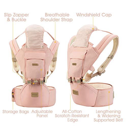 3 in 1 Ergonomic 360° Soft Baby Carrier, Baby Sling Comfortable Adjustable Positions,Breastfeeding Fits Newborn Toddler,HipSeat Infant Child Carrier, All Seasons,Perfect for Hiking Travelling (Pink)
