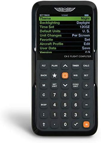 The CX-3 Flight Computer makes flight planning simple by taking confusion out of the equation. Fast, versatile and easy to use, the CX-3 delivers accurate results quickly and efficiently. It can be used on all FAA and Canadian pilot, mechanic, and dispatcher knowledge exams. Whether used for flight planning, ground school, or knowlledge testing, the menu organization reflects the order in which a flight is normally planned and executed, resulting in a natural flow from one function to the next with a minimum of keystrokes.Multiple aviation functions can be performed on the CX-3 flight computer including those related to time, speed, distance, heading, wind, fuel, altitude, cloud base, standard atmosphere, glide, climb & descent, weight & balance, as well as a holding pattern function to help determine entry method and holding details. A calculator, clock, timer and stopwatch are also built in along with mutliple settings for lighting, backlighting, themes, scrolling speed, time zones and more.The sleek design, and ergonomic fit and finish of the CX-3 make for easy transport. The protective cover comes off the front and snaps onto the back of the computer. A no-slip-strip prevents the CX-3 from sliding around on smooth desk surfaces. A Theme feature provides a convenient way to switch from Standard view to Night or Daylight views. The backlighting feature controls the brightness or intensity of the screen, and the buttons on the keypad will light up in Dusk and Night modes for use in darker environments. A Favorite feature provides quick access to your most frequently used function and store the Aircraft Profile will let you store numbers specific to your aircraft.Package includes CX-3 Flight Computer, 4 AAA batteries, protective cover, and quick start guide.