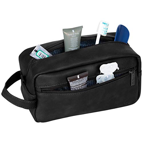 This faux leather, single compartment travel kit from designer Ben Sherman will have you feeling that there is a place for everything, and everything’s in its place. The bag’s compact construction allows it to easily fit in most any travel bag or luggage, keeping you organized while on-the-go. Durable, lightweight faux leather exterior with a tear-resistant, easy-to-clean, fully lined colorful interior is easy to spot treat. Top zip closure ensures your possessions are secure in the spacious main compartment interior, featuring two open top mesh pockets and a zipper pocket, leaving plenty of space to store any other needed toiletries or belongings. Additionally, an easy access front exterior full-length zipper pocket is made to store smaller items. A convenient, easy-to-grab side handle makes for comfortable carrying. Size: 9. 5” L x 5. 0″ H x 5. 0” D. Weight: 0. 55 lbs.