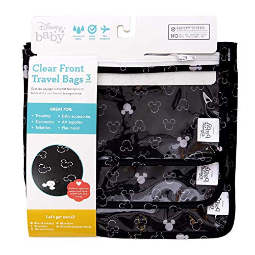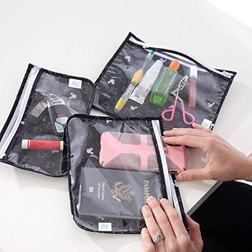 Bumkins TSA Approved Toiletry Bag, Disney Travel Bag, Quart Zip Pouch, PVC-Free, Vinyl-Free, Clear Sided, Set of 3 – Mickey Mouse Icon