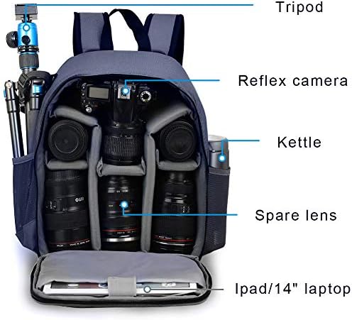 【Multi-Functions】⑥CADeN alloy zipper won’t rusty within 3 years ,and wont break within 5 years;⑦One side for ipad storage with sticker fixed inside the camera bag;⑧Inner bag paddings are made of 7-layer PE foam and PP board, well protect your camera from shocking, very durable;⑨Shoulder belts and handle that connected with camera rusksack have taken bar-tack reinforcement technology which load-bearing up to 50kg(110.2lb). Best care for your cameras, lens, flashes, tripod and other accessories.