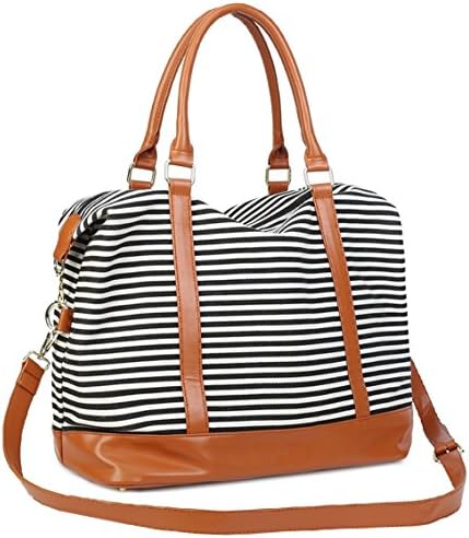 Women Ladies Weekender Travel Bag Canvas Overnight Carry-on Duffel Tote Bags for Rolling Luggage Handle.