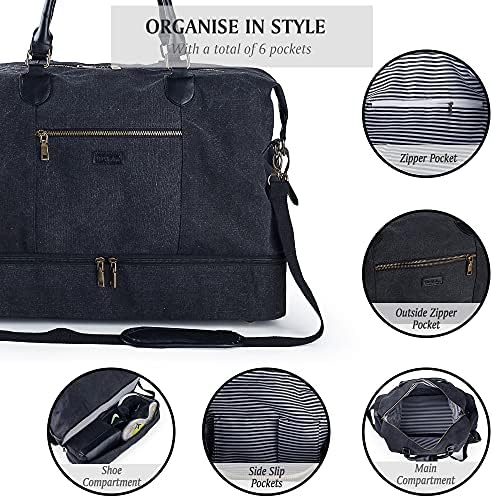 HAND-CRAFTED DESIGN: The large and spacious weekender bag is created with premium quality canvas accents. The interior is finished with a luxurious Strip cotton lining that looks fantastic and protects your items wherever you take them.