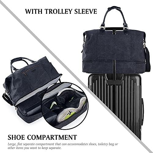 WITH A TROLLEY SLEEVE & SHOE COMPARTMENT – Back side sleeve allows you to slide it over rolling suitcase/luggage/roller bag handle. A separate compartment that can accommodates shoes, toiletry bag ,damp suits or other items you want to keep separate