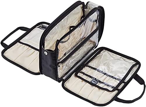 BRUSH HOLDERS – There are 10 slots in the front pocket to hold makeup brushes in different sizes. The transparent cover protects your brushes from falling while protecting the bristles from powder dust.