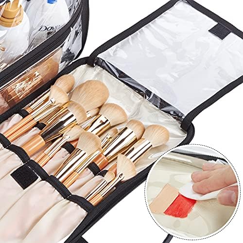 Super large capacity, Separate makeup brush pouch, See-through & Anti-dust inner