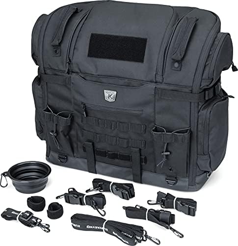 Riders have trusted the Kuryakyn Pet Palace and Grand Pet Palace to chauffeur their fur babies for millions of miles. Now, it’s BIGGER and BETTER than ever! The Pet Palace Titan is perfect for the passenger seat of most touring motorcycles, ATVs, UTVs or automobiles, and it comes loaded with creature comforts to keep pets weighing up to 35 pounds pampered in the wind! Dimensions (Approx): 22″ wide x 12″deep x 18.5″ tall. Interl Cubic Inches: 4,752 (approx 78 liters) ;Max. Recommended Weight: 35 lbs. Made from durable UV-rated, weather-resistant 1200-denier textile material. Rigid interl support structure for safety, durability and longevity. Front zippered opening folds down completely for easy pup loading/unloading on the bike. Interl adjustable leash system keeps dog/pet secure while in the bag. Metal D-rings and a variety of adjustable straps offer safe and secure mounting. Large integrated top vent provides airflow and reduces heat without jeopardizing stability. All-new light gray interior reduces heat and improves interior visibility in low light. Includes collapsible travel bowl for food/water. Integrated exterl rider-facing bottle pockets (2); multiple MOLLE modular attachment points for pet supplies, tools or our Removable Backrest Pad (P/N 5299, sold separately). Also great for use on ATVs or UTV’s/Side-by-Sides!
