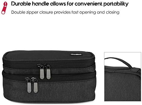 Durable handle allows for convenient portability; Wide-opening double zipper closure provides quick access to all your organized gadgets