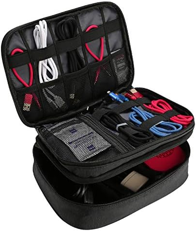 ProCase Travel Gadget Organizer Bag is ideal for storing and organizing gadgets of various sizes, such as cellphones, chargers, USB cables, earphones, SD cards, power banks and so on. Mesh pockets and elastic bands allow divisional storage and easy access to all of the electronics and accessories. Double layer design allows holding and securing all your essentials in one place. ProCase Versatile Organizer, a top solution for small electronics, a must-have for daily life and travel.