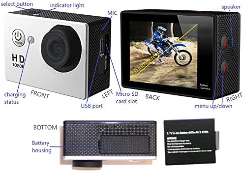 Our Full HD 1080p Sports Action Camera offers affordable High-Definition digital video & audio recording and high-quality photo capture for hobbyists of all ages. It comes with a detachable & rechargeable Li-ion battery that is fast-charging (under 4 hours) and long-lasting (at least 1.5 hours of continuous use). Battery can be charged via the included USB cable connecting camera to either a universal power adapter or a PC or a car charger. Designed for use in waterproof case, it can record water sports & diving activities and all kinds of outdoor sports in any weather. The included 16 GB Micro SDHC card can store 120 minutes of 1080p video, or 160 minutes of 720p video. Video record can be extended up to 320 minutes with purchase of a 32-GB card. The feature “Loop Recording” lets you continually replace an old record with a new one. Recording is in the popular AVI format which can be output to TV, or playback on the 2.0-inch camera screen, or transferred to a PC for viewing, editing and sharing. The camera has the super wide-angle lens of 140 degree and lets you select zoom and exposure. In the photo mode, the largest photo size is 12 MP, and the capture can be chosen as either a single shot or a burst photo or time-lapsed sequence of photos with a wide selection of time intervals. The photo format is JPEG with 3 choices of compression. Our cam kit has basic accessories to attach the camera to bicycles, helmets, poles and surfaces. When needed, additional accessories can be easily purchased, as the design of the waterproof case is universal. Our Full HD 1080p Sports Action Cam is light & small, easy to use and versatile. It will let you make professionally-looking amazing action photography & video in water and in air, as detailed and dynamic as you wish, and on the budget. Our cam bundle is the complete kit, including the memory card, so that you can start shooting the same day your purchase arrives.