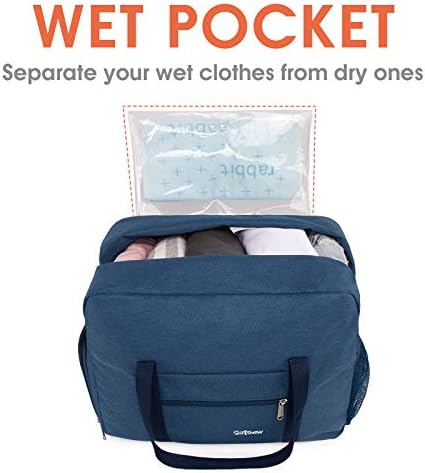 Dry & Wet Compartment Separation: This gym tote delivers spacious storage with 1 large main zippered compartment for dry & clean clothes or everything for gym & traveling you necessary, and 1 upgraded waterproof PVC lined pocket (16.5” x 13”) with zipper for wet items alongside the main compartment, in addition, 1 front external small zipper pocket for easy, on-the-go storage