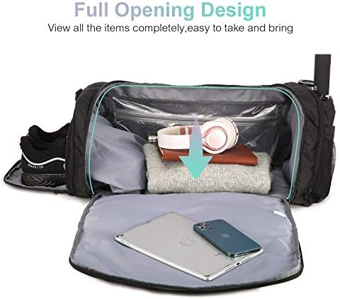 ???? Functional Duffel Bag – This duffel bag has a full opening mouth, easy to put and pick daily supplies, also designed with a waterproof pocket, and 2 water bottle pockets. It not only can be a gym bag, but also can be a travel bag, weekender bag, swim bag, shower bag and hospital bag, suitble for men and women etc.