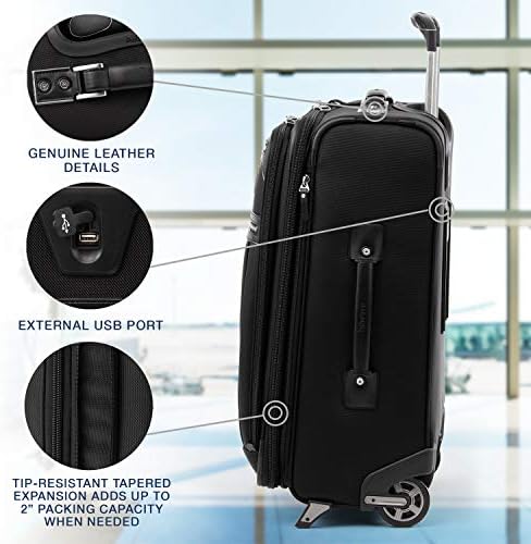 Never settle. Designed for the traveler who expects top performance without sacrificing style, the 22″ expandable carry-on Rollaboard suiter handles short to medium-length trips with polish. Intelligent function comes in a tip-resistant tapered expansion design, built-in wrinkle-resistant suiter and deluxe tie-down system with easy-access accessory pockets, along with a removable, quart-size wet pocket that is TSA compliant and perfect for toiletries. On its exterior, premium fabrics, genuine leather accents, and chrome zippers deliver effortless sophistication, while an adjustable PowerScope extension handle minimizes wobble and keeps you rolling smoothly on two Rollaboard wheels. Built-in USB port lets you power up on the go, while a dedicated powerbank pocket for your back-up battery adheres to faa regulations. This Fit to Fly carry-on rollaboard has been sizer been tested to accommodate overhead bin space on most major US airlines. Fully expanded Carry-On may not meet airline restrictions. Backed by our built for a Lifetime Limited Worry-Free Warranty that covers the cost of repair for damage from airline or other common carrier for the life of the bag after registration under the trusted companion promise.