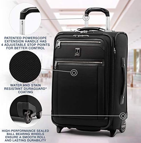 High performance sealed ball bearing wheels ensure a smooth roll and lasting durability; Patented PowerScope airline grade aluminum extension handle minimizes wobble and has four stops at 36 inches, 38 inches, 40 inches and 42.5 inches to accommodate users of different heights