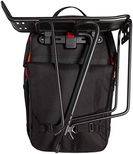 Attach the Pannier Backpack to your bike rack when riding and then transform it into a backpack for efficient carrying.