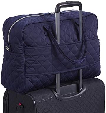 Made from quilted, sleek, water-repellent polyester. Exterior features one slip and two zip pockets. Interior features five mesh pockets. Trolley sleeve. Carry-on compliant. Removable strap. Zip closures. Capacity 29 L. Spot clean with mild detergent and a soft, damp cloth, rinse thoroughly; lay flat to dry. Vera Bradley is known for our travel bags for women, men, and kids. We offer cosmetic travel bag, make up travel bag, toiletry travel bag for women, travel bags for men, and travel bags for packing. Our assortment of travel bags includes duffels, overnight bags, lugagge, weekender bags, make up organizers, travel organizers, luggage tags, and more!