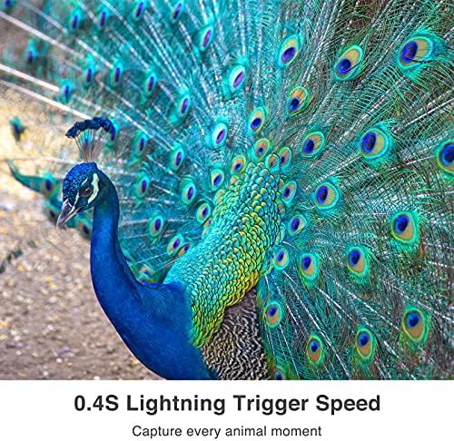 【0.4S Lightning Fast Trigger Speed】Once detect animal movements, hunting cameras will trigger in 0.4s to capture animal moments at lightning speed. Fully keep track of all memorable moments. Monitoring wildlife cameras support 16MP image and 1080P HD videos. You never lose an angle with 5 multi-shots. It has a maximum detection range of 20 meters and 100° wide angle, allowing you to caputure everything in front. The deer camera present you with high quality details like you are there.